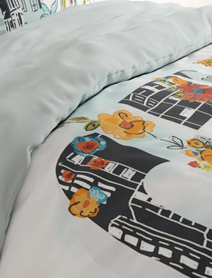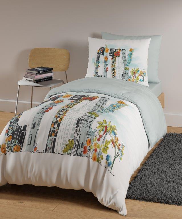 סט למיטת יחיד כולל ציפית לכרית בגודל 50/70 ס”מ, סדין למזרן בגודל 90/200 ס”מ גובה 30 ס”מ וציפה לשמיכת יחיד בגודל 150/200 ס”מ.