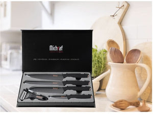 סט סכינים מנירוסטה איכותית עם ציפוי קרמי שחור