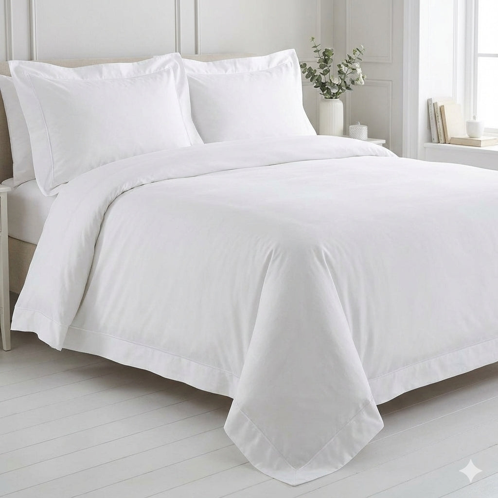 כותנה מצרית - סט סאטן 500 עם מסגרת רקומה בלבן Luxury White