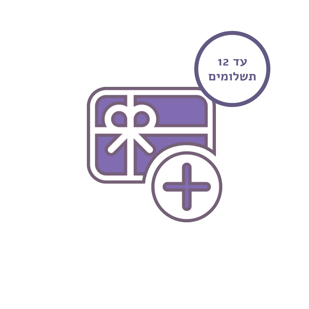 - עד 12 תשלומים – בכפוף לאישור חברת האשראי ותנאי המנפיק.